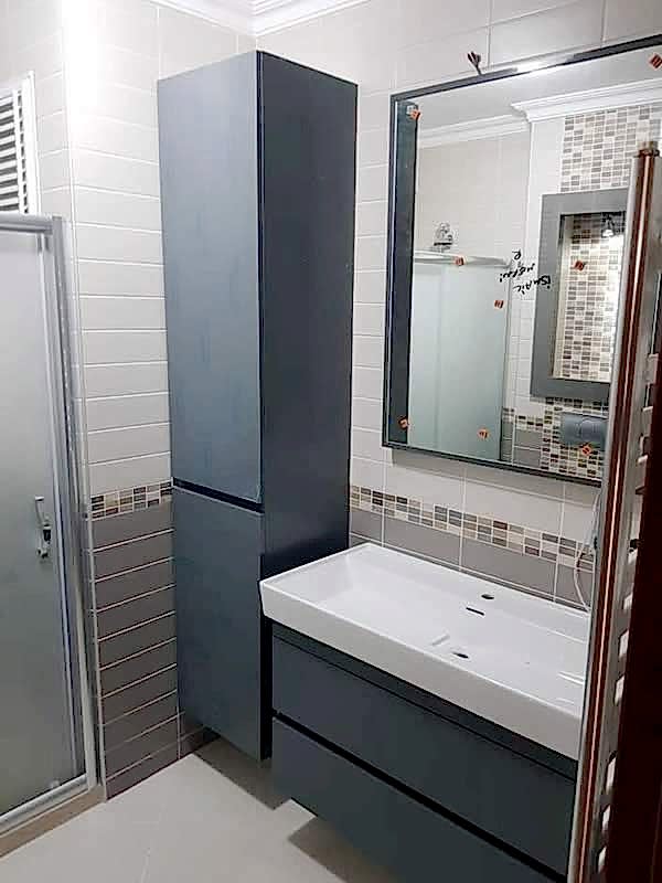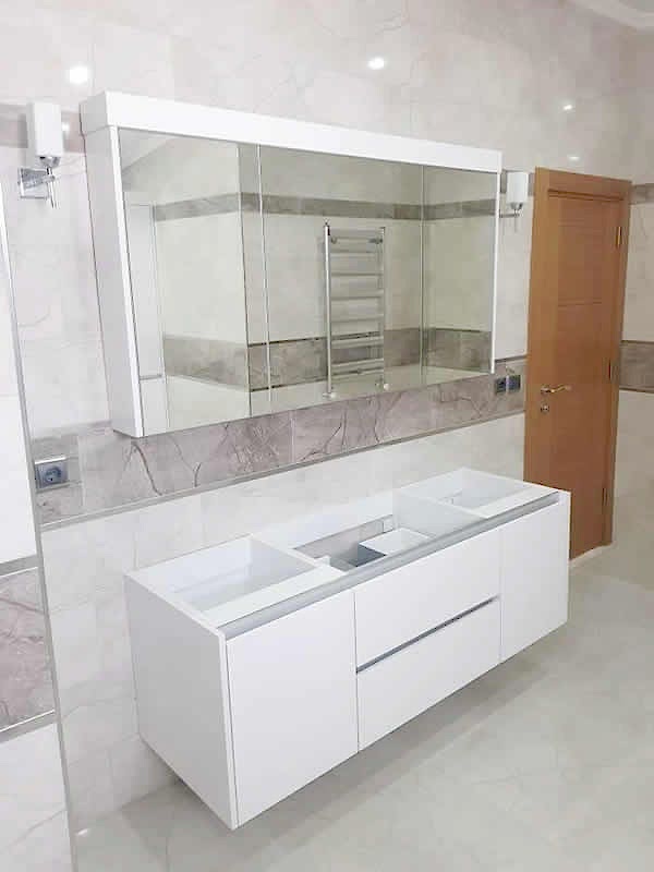 Banyo dolap modellerimiz siparişe özel üretilmekte olup iç tasarımı isteğinize göre tasarlanmaktadır. Raf ve çekmeceler standart olarak bulunmaktadır. İsteğe göre diğer aksesuarlar eklenmektedir.